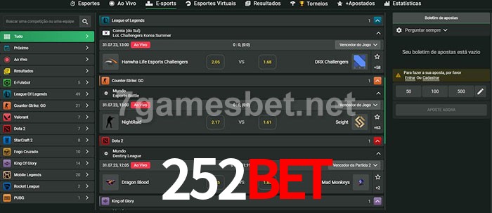 O 252bet oferece uma grande seleção de opções de apostas em e-sports com probabilidades competitivas